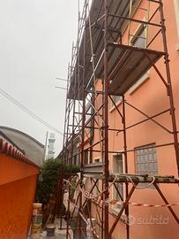 Vendo 100 mq di ponteggio, 58 correnti, 25 diagonali, 12 pedane, 2 botole, 2 scale, 24 H, 10 piedini regolabili, 7 battitacchi, 7 parapetti, 8 bastoni da 1 m , ganci, morsetti