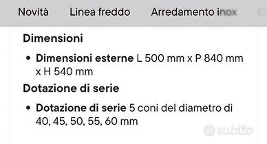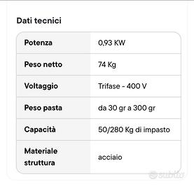 Vendo porzionatrice impasti nuova, Mai utilizzata solo per un impasto di prova. Appena aquistata arrivata in azienda il 19/3/26. Compresa di mobiletto con ruote in acciaio inox. Garanzia di 2 anni e compresa di spina trifase già installata. Motivi della vendita, non predisposta per il nostro tipo di impasto. Rimango a disposizione per qualsiasi chiarimento. Prezzo : 4.360,00 iva Inclusa. Spedizione in tutta Italia.
