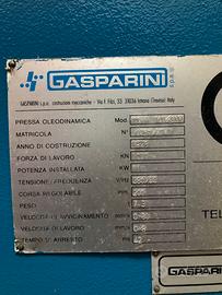 PRESSA PIEGATRICE IDRAULICA SINCRONIZZATA "GASPARINI" MOD.PBS 105/300 LUNGHEZZA UTILE DI PIEGATURA 3000mm, POTENZA 105TON, 6 ASSI, CORSA REGOLABILE 200mm, CNC DELEM DA64, BOMBATURA IDRAULICA, INCAVO 350mm, FOTOCELLULE ANTERIORI DSP DI SICUREZZA NUOVE, COMPLETA DI INTERMEDI E UTENSILI NUOVI, CANCELLO DI SICUREZZA POSTERIORE, POTENZA MOTORE 11KW, ANNO 1998, PESO 7.3TON, N. SERIE0798/3747, CE