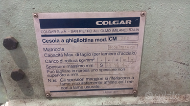 CESOIA COLGAR LAMA DA 2500MM SPESSORE DI TAGLIO 3/4MM FUNZIONANTE. possibile trasporto previo accordo