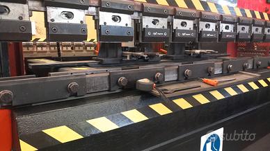 Pressa piegatrice SCHIAVI-AMADA RG 35.20 Forza 35 ton. Tavola da 2000mm Controllo Task.Master 3assi con n.4 fermi di battuta posteriore tutti motorizzati. Funzionante e visibile per prove di piega. Macchina C.E completa di protezioni.fotocellule e cabina antintrusione posteriore. Completa di serie stampi superiori.e inferiori. Con collo di cigno. Posso fornire il trasporto previo accordo.
