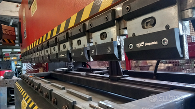 PIEGATRICE IDRAULICA SCHIAVI-AMADA RG 103. TAVOLA 3100MM FORZA 100 TON. FUNZIONANTE E COMPLETA DI STAMPI inferiori e superiori CONTTOLLO TASK MASTER A 3 ASSI Y.X.R MACCHINA C E.