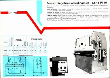 PRESSA PIEGATRICE A BARRA DI TORSIONE, 2500x40T OMAG, usata revisionata messa a normativa.FUNZIONAMENTO SOLO IN VELOCITA' LENTA, PER UN UTILIZZO A NORMATIVA SENZA FOTOCELLULE, impianto elettrico nuovo,COLTELLO SUPERIORE E PRISMA INFERIORE A 5 CAVE, RETTIFICATI CON 2 POSIZIONATORI POSTERIORI REGOLABILI MANUALI