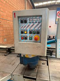 Punzonatrice EUROMAC Modello CX 1000/30 CNC Anno 1998 Condizione Usato Forza lavoro 30 Ton Incavo 1000 mm Diametro max punzone Tipo Trumpf 105mm - Tipo Amada/strippit 88,9 mm Corsa max. del punzone (regolabile): Tipo Trumpf 60mm - Tipo Amada/strippit 30 mm Colpi/minuto: 200 ca Bloccaggio matrice-Punzone: Hydraulique Cambio Matrice-Punzone 10*15 sec Precisione posizionamento assi ±0,1 mm Velocità di posizionamento assi (m/min) 30/40 Numero di punzoni su MULTITOOL 6 Movimentazione lamiera Automatique Processore CNC 86000 Computer PC industriale 486 DX4 100MHz Capacità disco fisso 1200Mb RAM 8 Mb Dischetti (1,44 Mb) 3" 1/2 Capacità serbatoio olio 140 lt Motore 4 Kw - 5.5 Hp Peso 4000 kg
