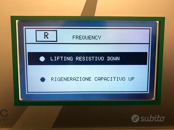 Radiofrequenza BRF ( Bio Frequence System) , apparecchiatura per trattamenti del viso, collo, decolleté e interno braccia . 5 tecnologie ( Endobistimolazione , Biosimolazione , radiofrequenza resistiva , radiofrequenza capacitiva e elettroporazione )