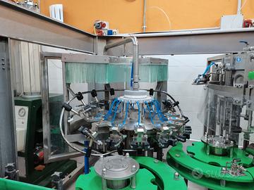 Riempitrice isobarica triblocco composta da sciacquatrice 12 pinze, 12 valvole riempimento, 5 teste tappanti per tappo corona 36 Sistema completamente automizzato con plc Siemens completa di motore traino nastro trasportatore. La macchina è del 2018 ed è stata smontata dalla linea ad Aprile 2022, completa di vari cambio formato per bottiglie vetro da 100 ml a 1000 ml, guarnizioni di ricambio ed inverter. Velocità di imbottigliamento frizzante 1.500 bott/h.