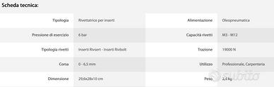 Rivit RIV998 Rivettatrice oleopneumatica bifase per inserti M3 - M12, appena revisionata, come nuova, poco usata, completa di manale e accessori.