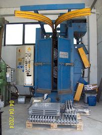 per cessione attività, vendo granigliatrice GHIBLI, a grappoli con 2 turbine da 7.5 Hp, a proiezione centrifuga di graniglia. condizioni , poco consumata, ricambi come da foto, palette turbine, alberi, cuscinetti, una turbina nuova, le turbine in uso vedi foto come nuove poco usate, facchinera elevatore non usurato, libretto uso e manutenzione circa 80 pagine doc. CE. portata sul grappolo 500kg, diversi grappoli a corredo. elevata produzione oraria, si può usare anche con una sola turbina. manuale con schemi dettagliato del quadro elettrico.