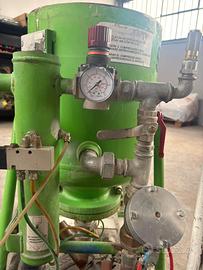 Sabbiatrice SL28 ACF usata ricondizionata in buone condizioni. Targhetta anno 2006 Ideale per qualsiasi lavoro di restauro e con ogni genere di inerte, anche quello che presenti la più elevata possibilità di conglomerazione. La macchina è completa di: - Serbatoio 24Lt - Comando a distanza 10 m. di tubo 20 x 33 con raccordo e portaugello - 1 ugello Ø 5 mm, filettatura D. 29 mm - B 125 - Raffreddatore d'aria integrato (2000 lit / min) - Regolatore di pressione a bordo (pressione regolabile da 0,5 a 7 bar) - Separatore di condensa a bordo - Valvola a goccia sottobotte per regolazione fuoriuscita dell'inerte *E' presente sul comando a distanza una valvola a tre posizioni che permette di utilizzare la sabbiatrice anche solo come soffiatore, allo scopo di ripulire il supporto di sabbiatura.