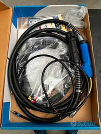 Vendo saldatrice professionale WECO Pioneer 321 MKS, completa della sua pistola/torcia MIG originale, tubi e accessori come da dotazione. NUOVA mai utilizzata. Vendo per errato acquisto. Saldatrice ad Inverter trifase sinergica adatta per officine, carrozzerie, carpenteria medio-leggera e saldature su posizionatori. Grazie alla sua dimensione e leggerezza, Pioneer 321MKS è facile da spostare nelle aree di lavoro. Un'ampia gamma di programmi MIG/MAG sinergici facilita la selezione di parametri di saldatura precisi, utilizzabili con qualsiasi filo. Caratteristiche tecniche principali - Modello: Pioneer 321 MKS - Numero di serie: 149988 - Alimentazione: 3x400V - Assorbimento: I1max 17.0A - I1eff 11.4A - Tensione a vuoto: U0 55V - Corrente di saldatura: 30A/15.5V -> 320A/30.0V - Ciclo di lavoro: - 25% @ 230A - 100% @ 230A - Classe di protezione: IP23 - Raffreddamento: AF - Normative: EN 60974-1/-5, EN 60974-10 Classe A - Velocità filo: 0.2-20 m/min - Fusibile esterno richiesto: T 3.15A 500V Dotazione inclusa - Torcia/utensile MIG completa - Cavi e tubazioni - Manuali e documentazione - Accessori vari come da foto
