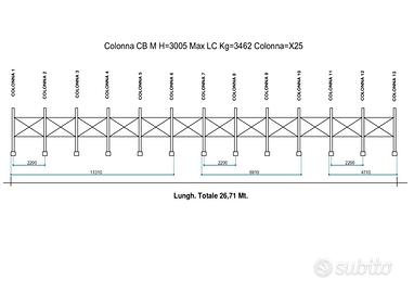 Le colonne monopiede sono 10pz con altezza da 3050 e 3pz colonne da 3600 con accessori per diventare bipiede.
