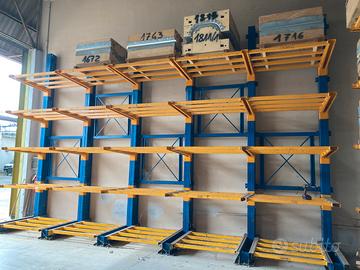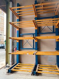 Vendo 6 colonne Cantilever con bracci da 1200 mm lunghezza, portata per braccio 1000kg, mono fronte con piani di appoggio In perfette condizioni Scaffali scaffalatura Cantilever scaffali a braccio ecc