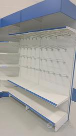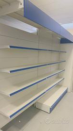 Quasi 50 metri lineari di scaffalatura da negozio in metallo verniciato con accessori