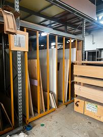 Rastrelliera-scaffale porta pannelli per falegnameria. Vendo due pezzi, comodissimi per stoccare i pannelli di legno. Come nuovi.