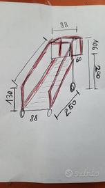 Scala in ferro per soppalchi completamente verniciata con gradini zincati . Ottima per interni ed esterni. Le ruote sono facilmente smontabili. Presenta un bel balconcino anche lui verniciato