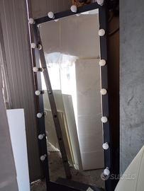 set composto da sedia trucco girevole specchio con luci due tavoli tondi