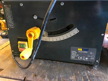 Sega Circolare da Banco 1500W Nutool NTS Potenza(Watt): 1500Tensione/Frequenza (Volt-Hz): 230-50Velocità (giri/min): 5700Diametro disco taglio / foro (mm): 254x30Spessore massimo di taglio perpendicolare a 90° (mm): 75Spessore massimo di taglio perpendicolare a 45° (mm)