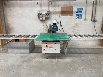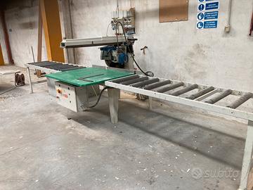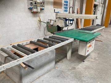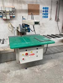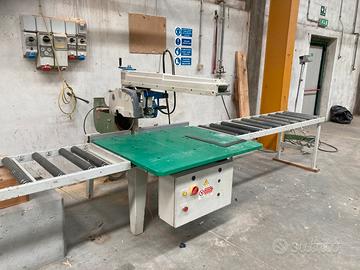 Vendo sega radiale omga, , modello radial 900/5, 380 volt, motore 3,7kw, max lama 400 mm, piano di lavoro in teflon comprese rulliere In ottime condizioni qualsiasi prova Sega