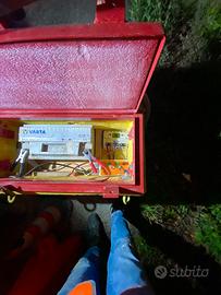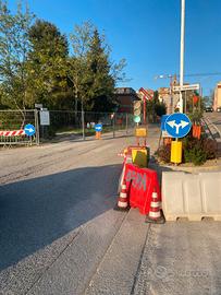 LA PRIMA COPPIA DI SEMAFORI A LED, E' DOTATA, OLTRE DELLA PROPRIA CASSETTA PORTA BATTERIE E CENTRALINE CON RUOTE, ANCHE DI UN BASAMENTO IN CEMENTO ARMATO, PER CANTIERI DI LUNGA DURATA, DOTATO DI PANNELLO SOLARE PER RICARICA BATTERIA CON APPOSITO SOSTEGNO ORIENTABILE VERSO IL SOLE, CASSETTA PORTA BATTERIA, CENTRALINA E TRASMORMATORE DI CORRENTE.