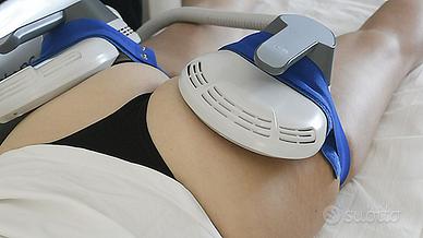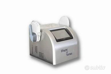VENDESI SHAPE&TONE TECNOLOGIA COME NUOVA Shape&tone rappresenta una vera e propria innovazione nel campo dell'estetica funzionale. Grazie alla combinazione di onde elettromagnetiche abbinate ad un sofisticato sistema di potenza adeguatamente raffreddato, riesce a generare delle vibrazioni capaci di far contrarre un muscolo fino a decine di volte al secondo. Il suo protocollo di lavoro prevede almeno due applicazioni a settimana. Questa tecnologia di energia elettromagnetica induce contrazioni muscolari profonde difficili da realizzare con movimenti volontari favorendo il rimodellamento della silhouette. L'azione riesce a ridurre adiposità mentre esercita contrazioni per tonificare. Come funziona Shapes? Utilizza energia elettromagnetica ad alta intensità in grado di generare migliaia di contrazioni al minuto! o Oltre a fornire una profonda stimolazione muscolare, riesce a ridurre notevolmente gli accumuli di grasso in modo spontaneo. o E' un trattamento sicuro ed efficace che possono fare quasi tutti. o Bastano poche sedute per vedere dei buoni risultati! o Le zone che maggiormente vengono trattate sono glutei, addome, cosce e braccia. o Ogni seduta dura 30 minuti. TECNOLOGIA COME NUOVA