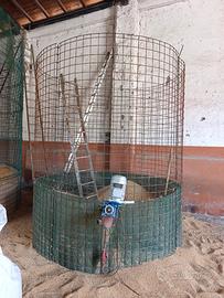 Silos per granaglie con coclea compresa. Misure diametro 6 metri, altezza 5 metri (componibile 5 stadi da 1 metro). Coclea compresa. Nel prezzo anche secondo silos fatto artigianalmente circa 3 metri di diametro, altezza 4 metri. Coclea compresa.