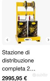 Stazione distribuzione lubrificante Vasca recupero Stazione per 2 fusti da 208 lt Pompa erogazione lubrificante Pistola conta litri