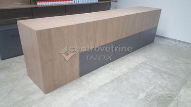 N° 6 Banchi Cubolotto da 90 X 60 X 45H con struttura in nobilitato N° 3 di colore Hold West, N° 3 di colore Grigio Pietra, banchi montati sovrapposti (da fissare tra di loro mediante ferramenta non fornita), predisposto per cassetti. Banco Fornito Smontato.