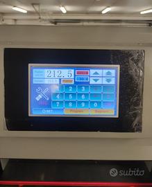 Dotata di display touch-screen per una facile programmazione, puntatore laser, pedale di azionamento pressino.