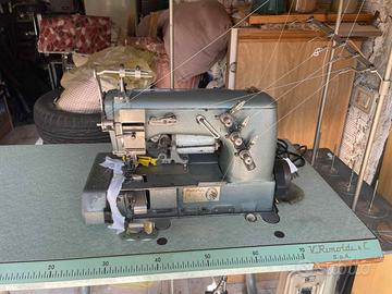 La macchina è montata sul suo tavolo da lavoro originale V. Rimoldi & C. S.p.A. ed è in ottime condizioni estetiche, come visibile in foto. È funzionante e pronta all'uso