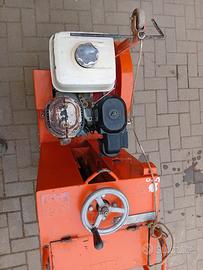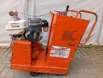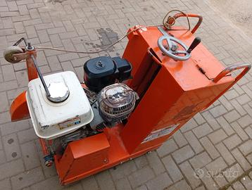 Tagliapavimento Norton Clipper CS1 con motore Honda GX390 benzina 13HP (1,6 kW) 4 tempi con avviamento a strappo, disco max ø 500 mm, profondità max di taglio 190 mm, disco raffreddato ad acqua, serbatoio acqua da 70 litri, peso a vuoto kg 140, lunghezza mm 1088, larghezza mm 580, altezza mm 925.