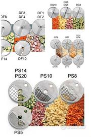 La moltitudine di dischi ordinabili permette di tagliare a fette, cubettare, tagliare in listarelli sia prodotti duri che delicati.