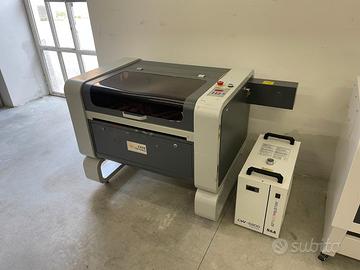 In vendita taglio incisore laser co2 con area di lavoro da 40x60, potenza 60 watt. Chiller cw 5200.