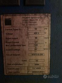 TAGLIO LASER TRUMPF USATO modello TRUMATIC L6030 4000 W anno di costruzione 2004, con sorgente con circa 47.000 ore: