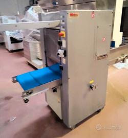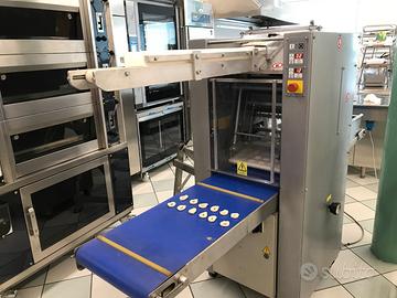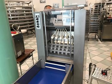 Tarallatrice automatica per produzione taralli e grissini di vari millimetri. La struttura della macchina è costituita da acciaio tagliato al laser, piegato, elettrosaldato. Il suo funzionamento è molto semplice: la sfoglia di impasto viene appoggiata sulla scaletta di alimentazione e inserita nella trafila che può avere diversi diametri. Una volta incalanati i grissini provenienti dalla trafila e avviato la macchina, un dispositivo ad aste e imbuti intercambiabili provvede a formare il tarallo ed un lama che ha un movimento alternativo lo taglia e lo chiude. La macchina è dotata di temporizzatori per variare la quantità di grissino all'inizio e alla fine del tarallo ed ha la possibilità di produrre grissini di varie lunghezze. Produzione oraria 1400/1800 tagli/h. Diametro tarallo 35/95 mm Diametro grissino 6/12 mm Dimensione teglia 800x400 Dimensioni macchina 1250x685x1720H peso 340 kg Assorbimento 1,8 kw 380 Volt. N°01 TRAFILA IN DOTAZIONE 6X8