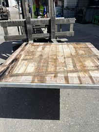 Vendo tavole industriali in legno con struttura laterale in ferro, provenienti da produzione di prefabbricati in cemento. ? Molto robuste e resistenti ? Struttura rinforzata con telaio metallico ? Ideali per: edilizia casseforme bancali/piani di lavoro arredi industrial / fai da te utilizzo agricolo o magazzino ? Disponibilità: circa 1500 pezzi ? Condizioni: usate, con normali segni di utilizzo (come da foto), ma ancora strutturalmente solide ? Prezzo: da concordare in base alla quantità ? Possibilità di vendita in blocco o a lotti ? Visibili su appuntamento