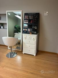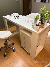 Tavolo Nails e cassettiera Vismara in acero bianco. Poltrona cliente e poltrona make up. Venduti anche separatamente.