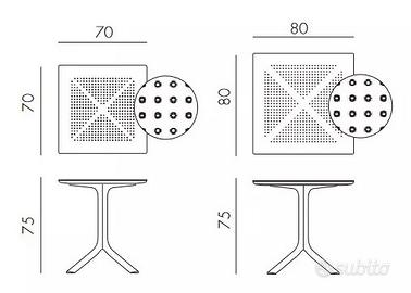 Vendo num. 25 Tavoli per Bar-Ristorante Nardi, modello CLIP 80, colore bianco. Misure cm 80 x 80, Altezza tavolo cm 75 , peso kg 11 in ottime condizioni, ancora con scatole d'imballaggio. Visionabili ad Olbia (SS)