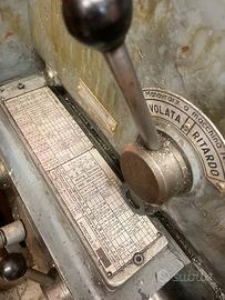 Vendo tornio Argus 1960 con mandrino da 200 mm passaggio barra 40 mm distanza Centro mandrino slitte 180 mm distanza mandrino contro punta 1000 mm scatola Norton per filettature metriche e gas , alimentazione del motore 380 V ,la macchina funziona bene necessita di qualche regolazione per essere più precisa