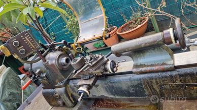 Regolazione continua della velocità. Dotato di 2 contropunte, una a vite e una sensitiva. Qualche porta utensili e altri accessori.