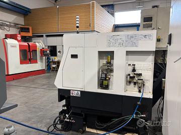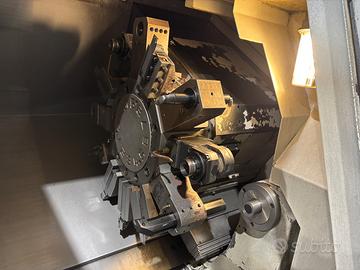 Tornio CNC Mazak Quick Turn Nexus 200 M con controllo Mazatrol Nexus 640T, tastatore utensili, recuperatore pezzi, convogliatore trucioli, set di portautensili, mandrino per pinze e interfaccia per caricatore barre.