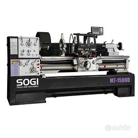 Il tornio parallelo SOGI M7-1500D è una macchina utensile professionale, dalle linee tradizionali, progettata per la lavorazione di materiali metallici, leghe derivate e molto altro in grado di effettuare torniture (sia coniche che cilindriche), filettature (sia Metriche che Whitworth), forature, alesature, profilature ecc.