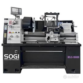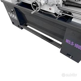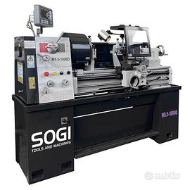 Il tornio parallelo SOGI M5.5-1000D è una macchina utensile professionale, dalle linee tradizionali, progettata per la lavorazione di materiali metallici, leghe derivate e molto altro in grado di effettuare torniture (sia coniche che cilindriche), filettature (sia Metriche che Whitworth), forature, alesature, profilature ecc.