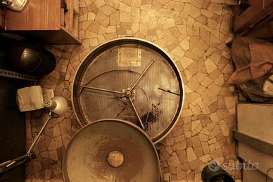 Tostatrice storica Trabattoni ben conservata ma bisognosa di rimessaggio. Funziona a legna, ma può essere adattata anche a gas. Fanno parte dell' annuncio anche 4 silos con aspirazione con carrello di carico e 2 contenitori di passaggio per la scernita delle pellicine e tubature varie di connessione al camino