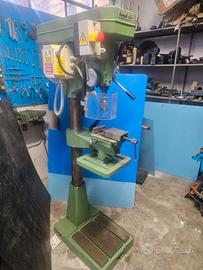 Descrizione: Trapano a colonna BIMAK Trapano a colonna marca BIMAK mod 22 Fo con volantino di avvicinamento tavola girevole morsa e incavo per tubi alimentazione 380 volt . Invertitore di marcia per effettuare filettature . Ottime condizioni