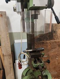 Trapano a colonna con mantrino HSS per punte HSS, 380V, fungo e protezioni a norma di legge. Con morsa e piano girevoli Praticamente nuovo usato pochissimo