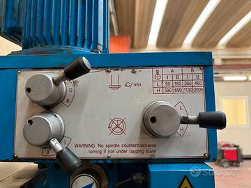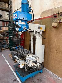 Trapano fresa universale - cono ISO 40 - Tavola a croce - Testa inclinabile-Slittone scorrevole e orientabile . Canotto con discesa automatica o manuale- Inversione per filettatura - Completo di alcuni portautensili e mandrino auto-serrante per punte elicoidali Prezzo interessante.