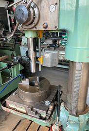 Trapano testa ingranaggi Bulgaro Modello PH -U31 Foratura dal pieno 30 mm Avanzamenti automatici Corsa canotto 250 mm Dimensioni tavola superiore 400x400 mm Dimensione autocentrante 300 mm Giri mandrino : 85 -1500 rpm Cono morse CM4 Alimentazione 380 v