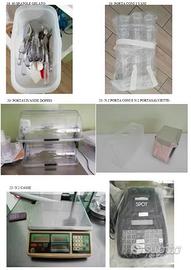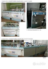 Selezione di attrezzature professionali per gelaterie disponibili per l'acquisto previa quotazione su richiesta. 1- Trittico bravo pro 2014 2- Pastorizzatore 40 L 3- Lavello in acciaio inox 2 vasche senza ripiano 4- Abbattitore Hiber 3 teglie 2020 5- Frigorifero verticale positivo (70 L) 6- X4 Frigorifero verticale negativo (70 L) 7- Dolce vita 8 pozzetti doppia carapina 8- Dolce vita 10 pozzetti doppia carapina 9- Tini di maturazione 30 L + 30 L 10- Banco gelato pozzetto 24 carapine doppie 11- Lavello in acciaio inox 1 vasca (50x70x85 cm) senza ripiano 12- Lavello in acciaio inox 2 vasche con ripiano 13- Armadio verticale negativo 14- X2 Vetrina verticale combinata negativa-positiva 15- Abbattitore verticale lIsa 6 teglie 2012 16- Lavastoviglie verticale 2020 (ciclo 20 sec.) 17- X2 Bilancia elettronica 18- Spatole gelato (60 unità) 19- Porta coni da muro a 3 vani 20- Portavivande doppio 21- Porta coni e porta salviette da banco (2 unità) 22-X2 Cassa elettronica 23- X2 Armadio con ripiani in acciaio inox (90 cm) 24- Borse termiche per trasporto gelato (5 unità)