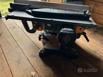 Lama da 250 mm, possibilita' di angolare a picimento i tagli. Piano per tagli lunghi e in basso trovatrice.