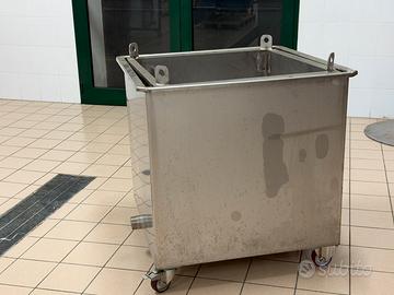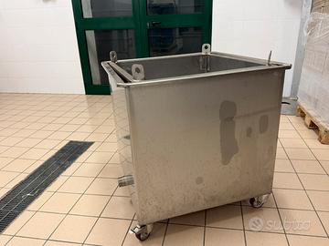Vasca in acciaio inox con ruote per olive da mensa in salamoia. Disponibili 6 pezzi. Mai utilizzate.